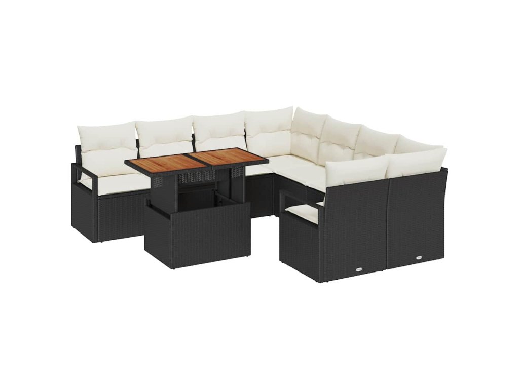 Zahradní jídelní souprava s polštářem 9 pcs Černá a krémová 3349690