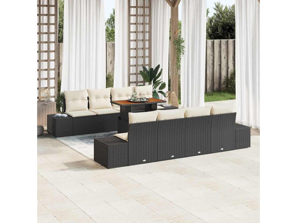 - Odolnost vůči povětrnostním vlivům Vyrobená z polyratanového materiálu, tato sada nábytku nabízí vynikající UV odolnost, což zajišťuje, že její živý vzhled zůstává svěží i při prodlouženém slunečním záření. Spojte to s odolnými ocelovými a akátovými komponenty; vaše venkovní sada si udrží svou integritu a krásu i při různých povětrnostních podmínkách.