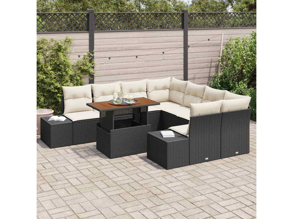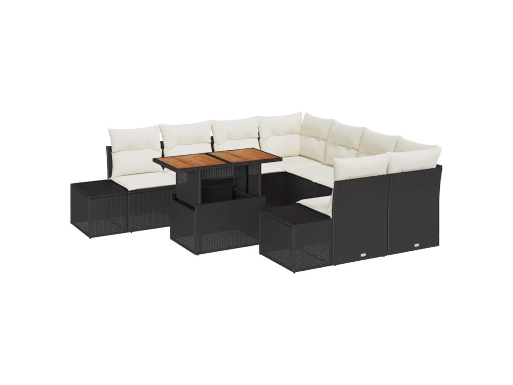 Zahradní jídelní souprava s polštářem 9 pcs Černá a krémová 3349942