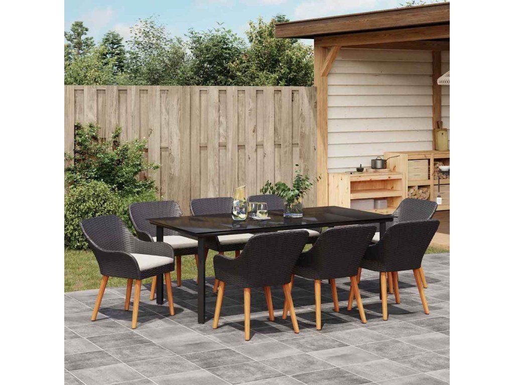 Zahradní jídelní souprava s polštářem 9 pcs Černá polyratan 3261676