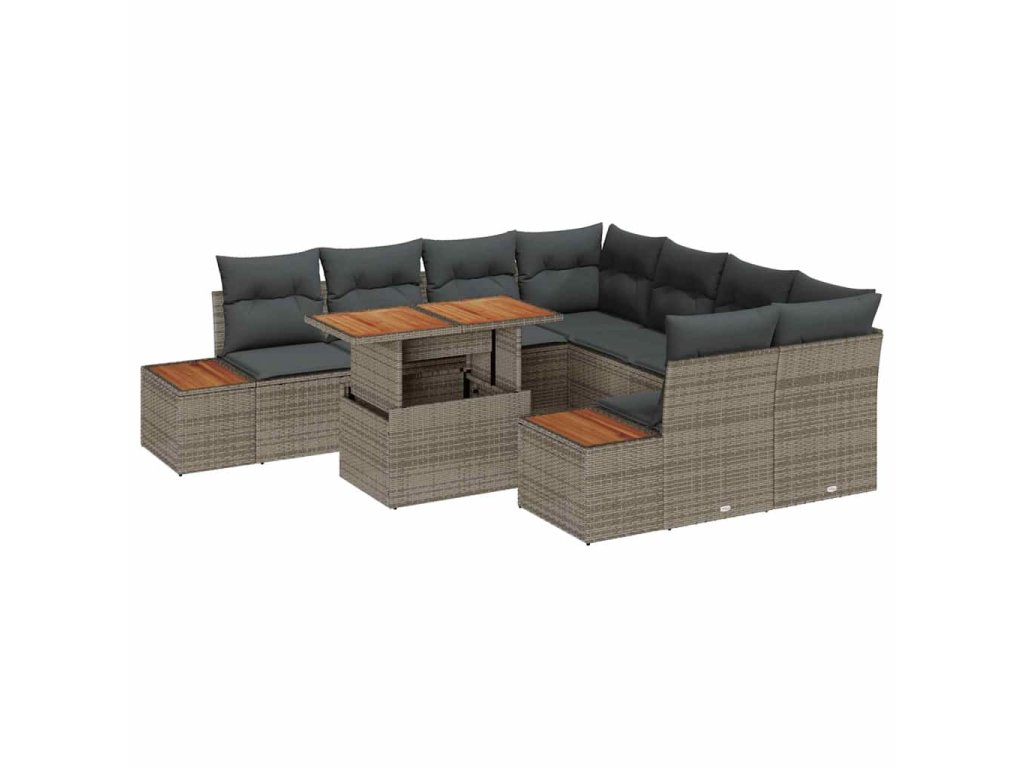 Zahradní jídelní souprava s polštářem 9 pcs Šedá a hnědá 3350056