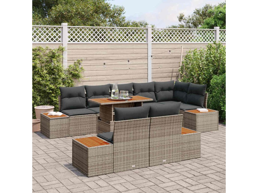 Zahradní jídelní souprava s polštářem 9 pcs Šedá a hnědá 3350081