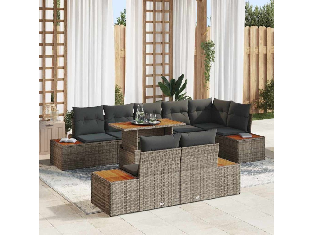 - Součásti: Set obsahuje čtyři boční pohovky se úložným prostorem, rohové sedadlo s integrovaným úložným prvkem, tři středová sedadla pro další organizaci a jeden zahradní stůl. Každý kus se dokonale spojí, což vytváří soudržný zážitek v lounge, zatímco zajišťuje, že všechny nezbytnosti zůstávají na dosah. To umožňuje efektivní úložiště a rychlý přístup k věcem, což zvyšuje venkovní relaxaci.