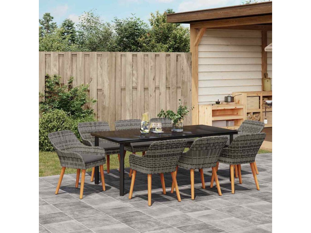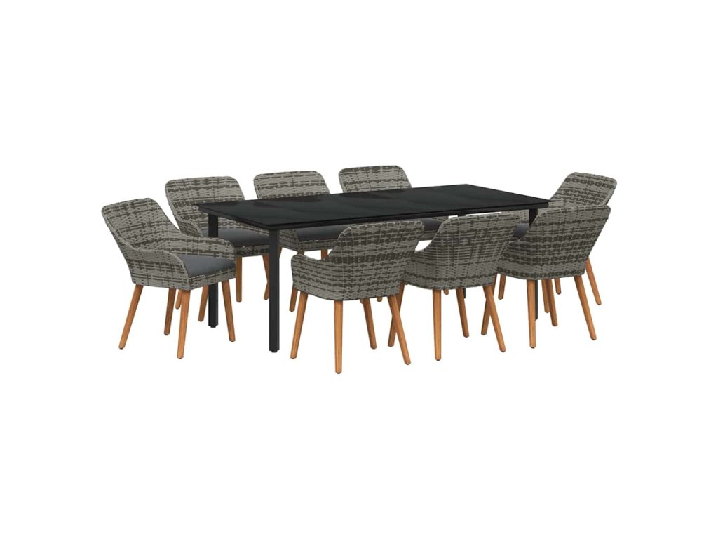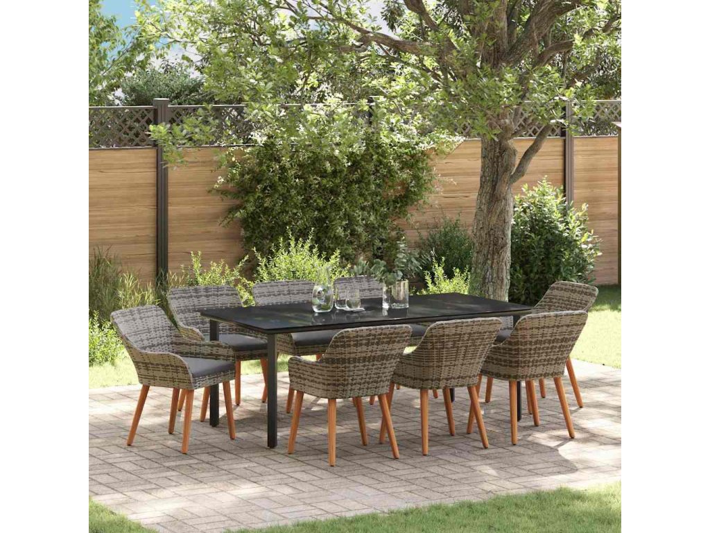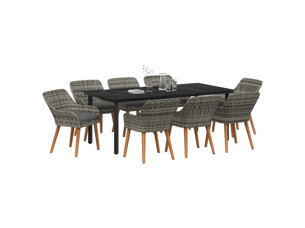 Zahradní jídelní souprava s polštářem 9 pcs Šedá polyratan 3261690