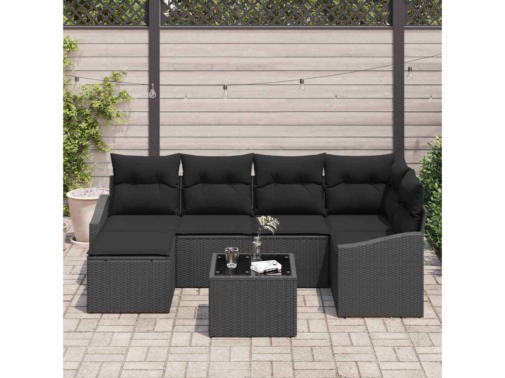 Zahradní jídelní souprava s polštářem s úložištěm 7 pcs Černá 3355472