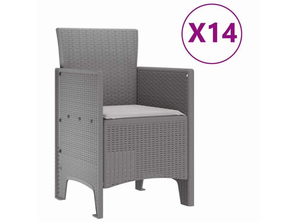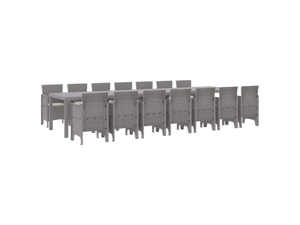 Zahradní jídelní souprava s polštáři 15 pcs Světle šedá PP 3378809