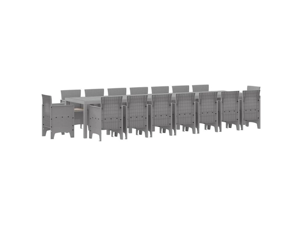 Zahradní jídelní souprava s polštáři 17 pcs Světle šedá PP 3378668