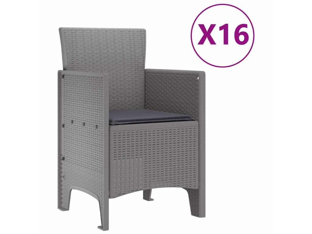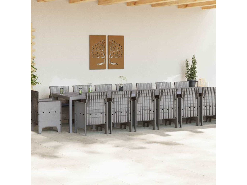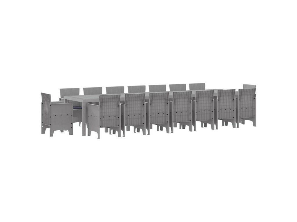 Zahradní jídelní souprava s polštáři 17 pcs Světle šedá PP 3378670