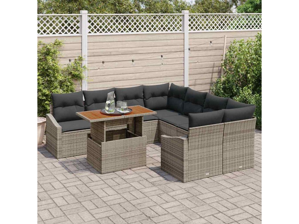 - Úložná funkčnost: Pečlivě navrženo s integrovanými úložnými prostory v područkách, rohových a středových sedadlech, nabízí praktické řešení pro organizaci polštářů a dalších nezbytností. Tato funkce přidává pohodlí, což činí ideální pro uklizené venkovní prostory.