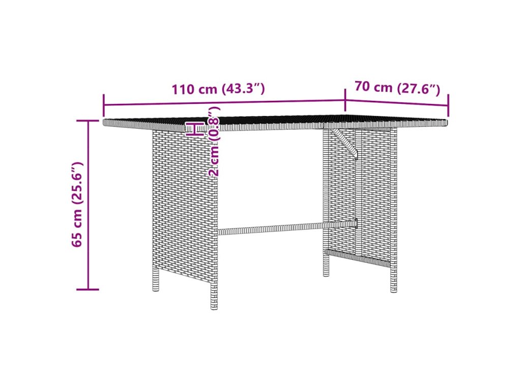 - Rozměry stolu: 110 x 70 x 65 cm (Š x H x V)