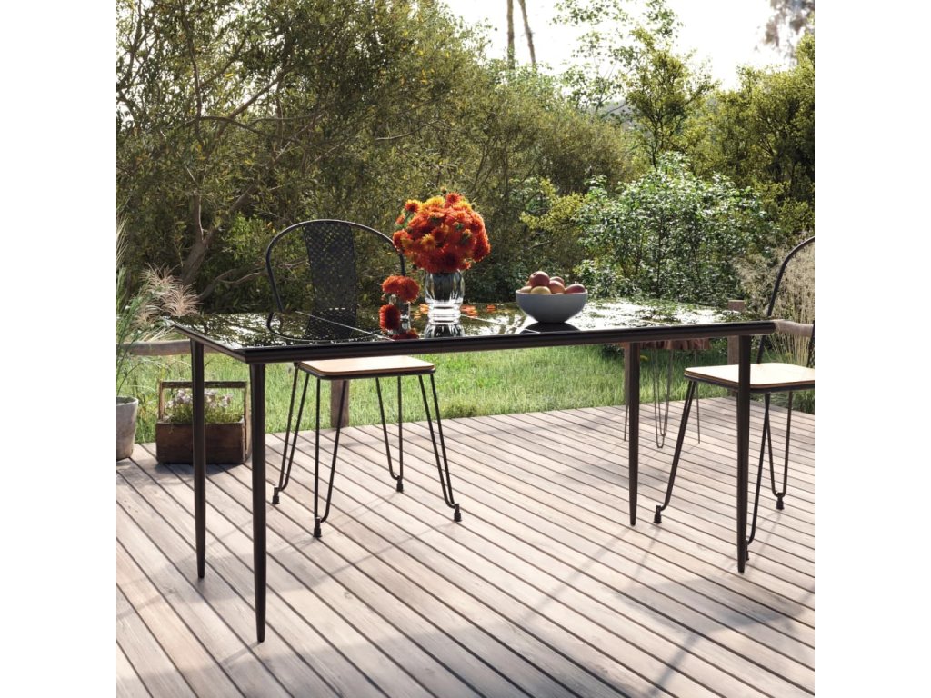 Zahradní jídelní stůl černý 160x80x74 cm ocel a tvrzené sklo 319279