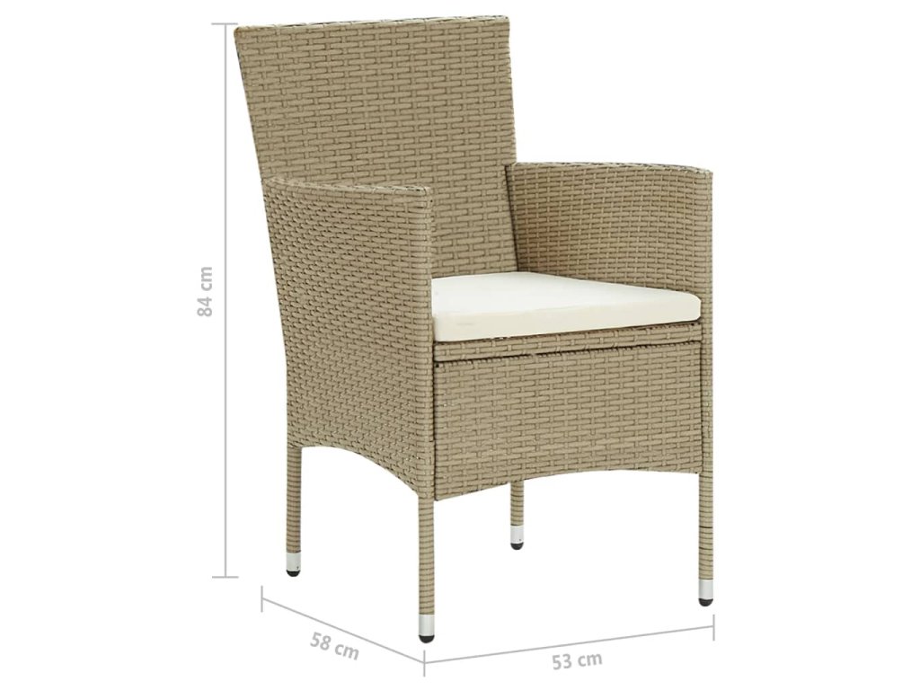 Sada zahradních židlí vynikne v každém prostředí. Křeslo má robustní ocelový rám, který je potažený ručně vyplétaným PE ratanem, a proto výborně odolává korozi i hnilobě a nabídne vám roky kvalitního odpočinku. Venkovní židle mají zaoblená opěradla a područky s ergonomickým tvarem pro maximální komfort. Dodané podušky na sedák skvěle doplňují židle a zaručují pohodlné posezení.