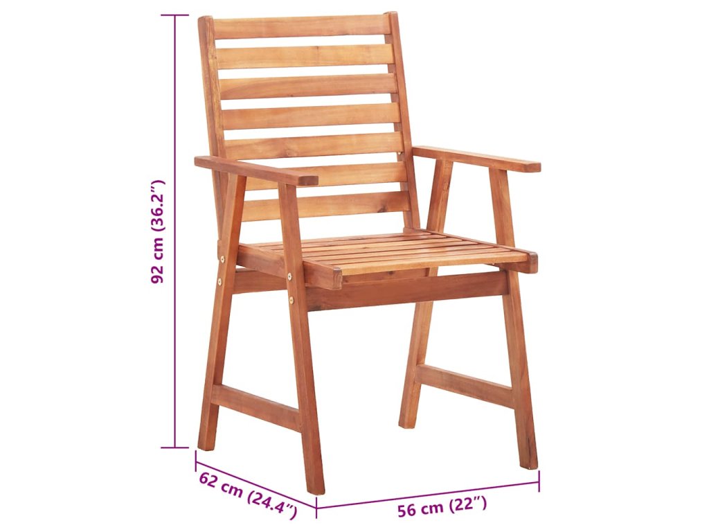 - Materiál židlí: masivní akáciové dřevo