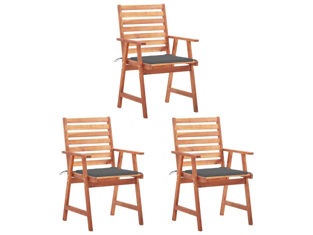 Zahradní jídelní židle s poduškami 3 ks masivní akáciové dřevo 3064347