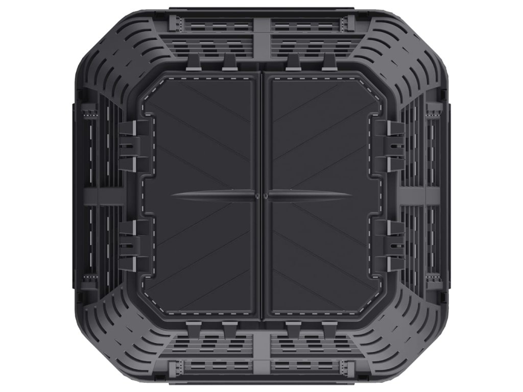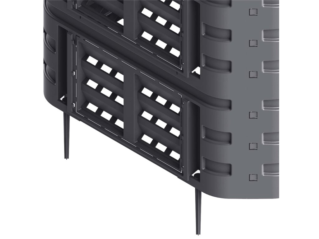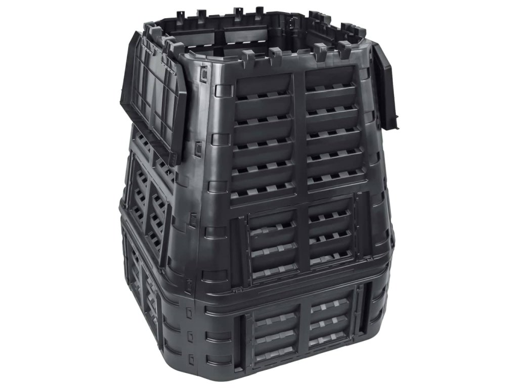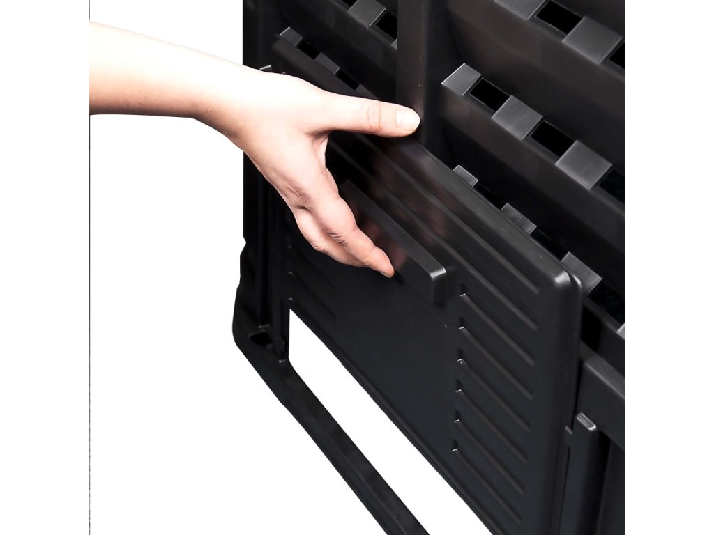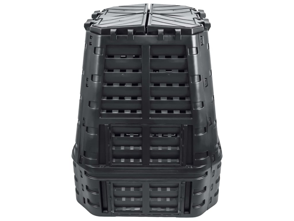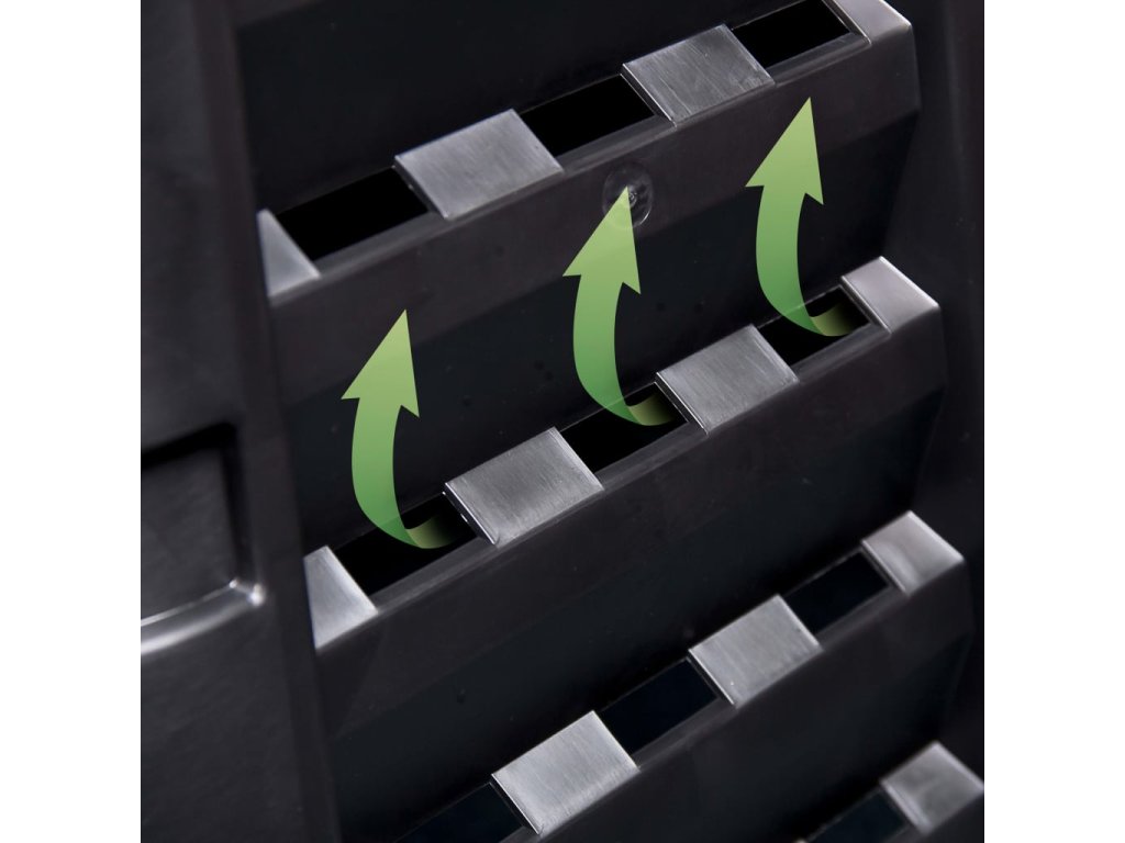 Vysoká teplota, která vzniká uvnitř kompostéru, urychluje bakteriální rozklad a vytváří lepší humus. Kontejner má kompaktní design, takže nezabírá příliš místa, ale zároveň nabízí mohutný vnitřní objem. Horní víka umožňují snadné plnění shora, zatímco vyklápěcí dvířka ve spodní části naopak zajišťují jednoduché vytahování humusu. Kapkový zavlažovací systém, otvor na visací zámek, pevné postranní západky, odolné panty vík, praktická rukojeť a velká posuvná dvířka s šikovnými úchytkami navíc přispívají k velmi pohodlnému používání.