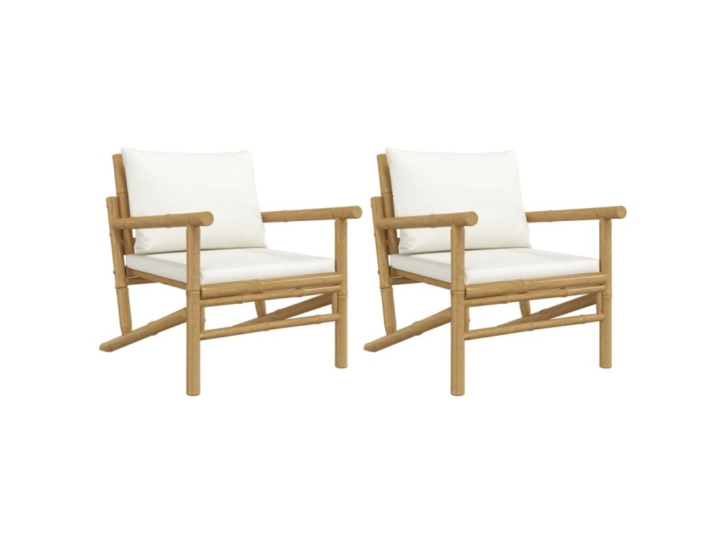 Zahradní křesla 2 ks s krémově bílými poduškami bambus 363462