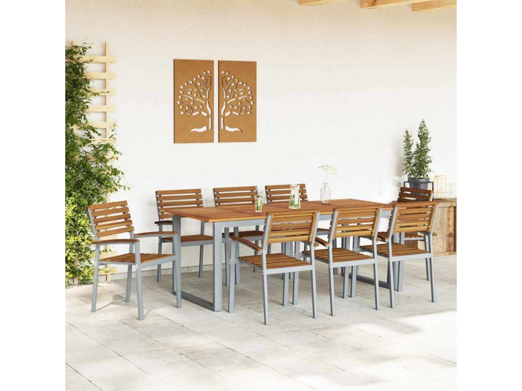 Toto stohovatelné zahradní křeslo spojuje moderní styl s funkčností. Hlavně se hodí ven, ať už na terasy nebo dvůr. Jeho elegantní obdélníkový tvar a minimalistický design udělají dojem na každé zahradní párty nebo při odpočinku. Přírodní dřevěná textura a odolný ocelový rám dodávají křeslu moderní vzhled a zajišťují pohodlí a odolnost.
