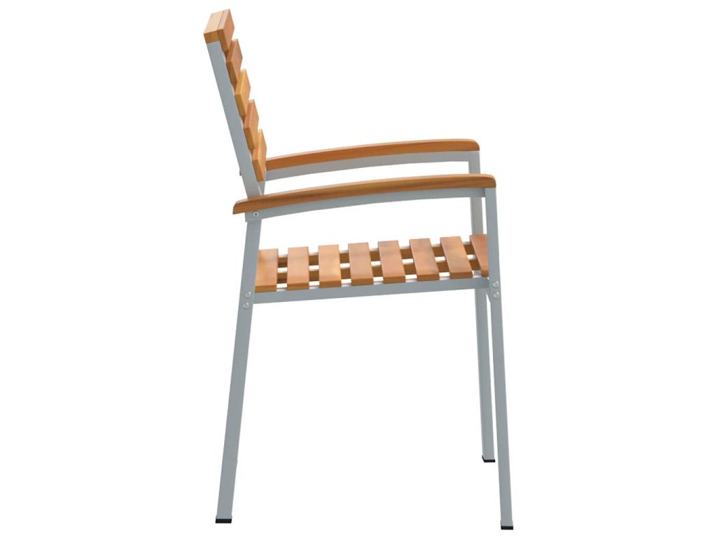- Součásti: Křeslo má pohodlné opěrky vyrobené z kvalitního akáciového dřeva, což znamená jednotný design. Ocelové nohy poskytují pevnou oporu, i na nerovném povrchu.