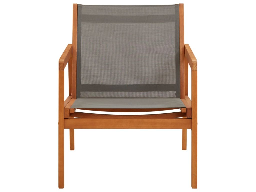 Zahradní křeslo je vyrobené z masivního eukalyptového dřeva, napuštěného přírodním olejem, které je odolné vůči povětrnostním vlivům a má dlouhou životnost. Je vhodné pro venkovní použití. Křeslo je navržené s pevným a prodyšným textilenem, který vám nabídne maximální pohodlí pro vaše chvíle odpočinku. Také se snadno čistí a udržuje.