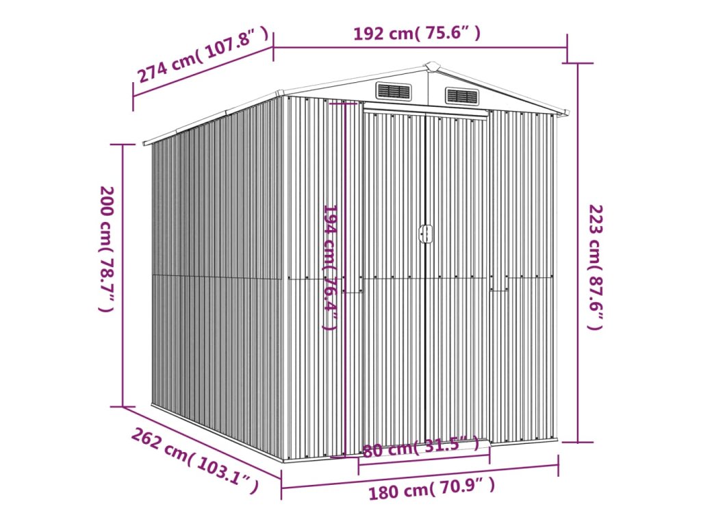 - Odolný materiál: Zahradní kůlna na nářadí je vyrobena z pozinkované oceli, která je odolná a nepodléhá korozi ani nepříznivým povětrnostním vlivům.