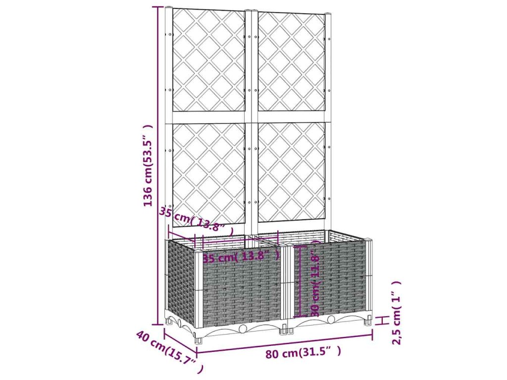 - Všestranný: Integrovaná treláž nabízí skvělou oporu pro pěstování popínavých rostlin, jako jsou rajčata, hrášek a růže.