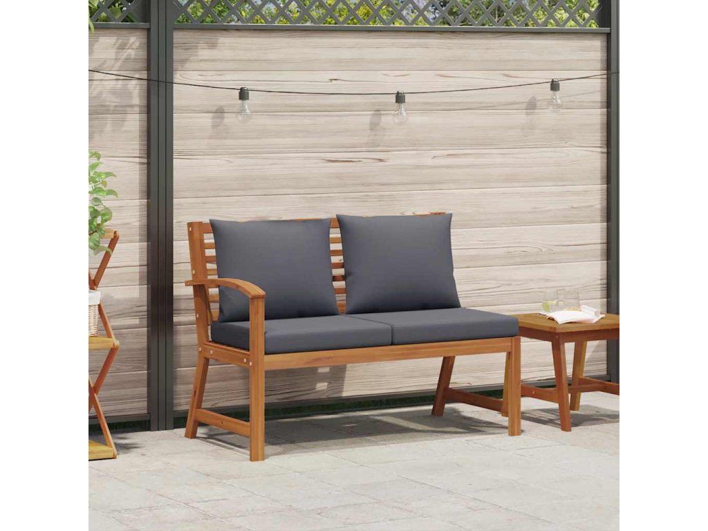 Zahradní lavice 114,5 cm tmavě šedá poduška masivní akácie 311837