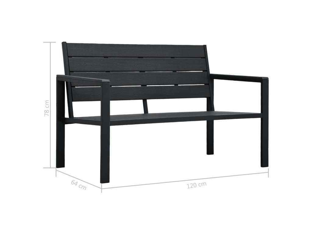 Zahradní lavice 120 cm HDPE černá dřevěný vzhled 47878