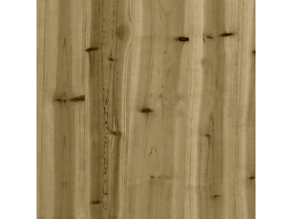 - Impregnované dřevo: Vrchní část zahradního posezení je vyrobena z vakuově impregnovaného borového dřeva, které zaručuje dlouhou životnost.Masivní borové dřevo je krásný přírodní materiál.Má rovnou kresbu a obsahuje suky, které materiálu dodávají jeho charakteristický, rustikální vzhled.Impregnace je konzervační proces, který se provádí pomocí autoklávu.Tlaková úprava zvyšuje odolnost proti trouchnivění a počasí.