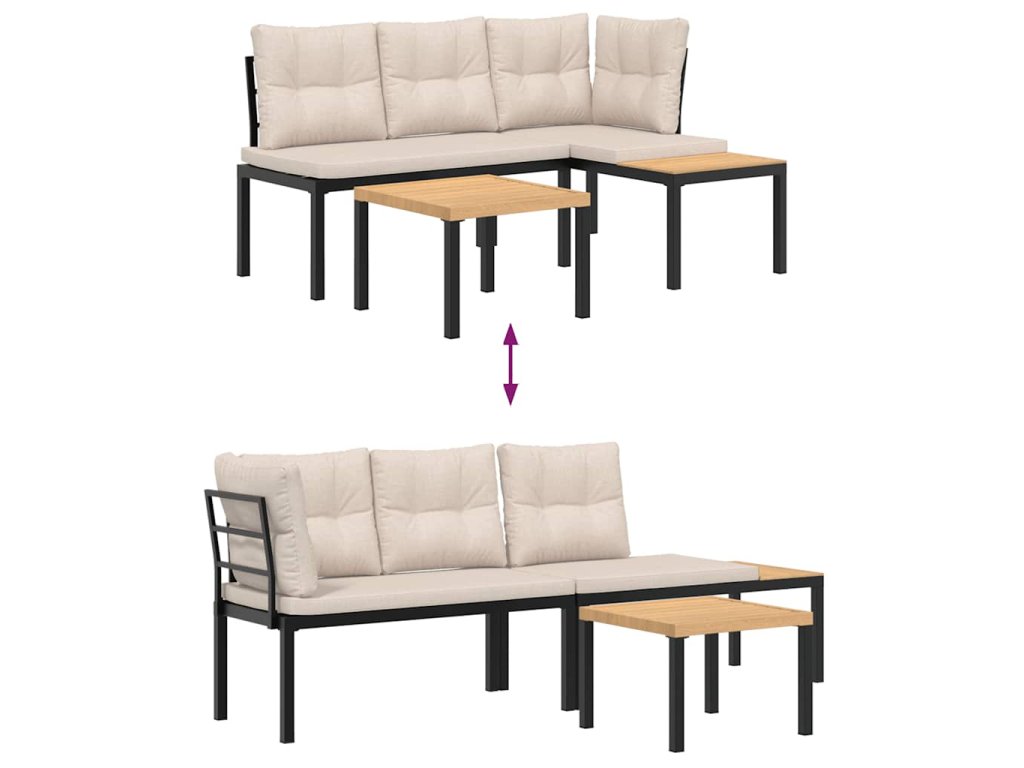Zahradní lavice s poduškami 3 ks černé práškově lakovaná ocel 3283647