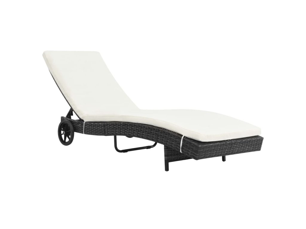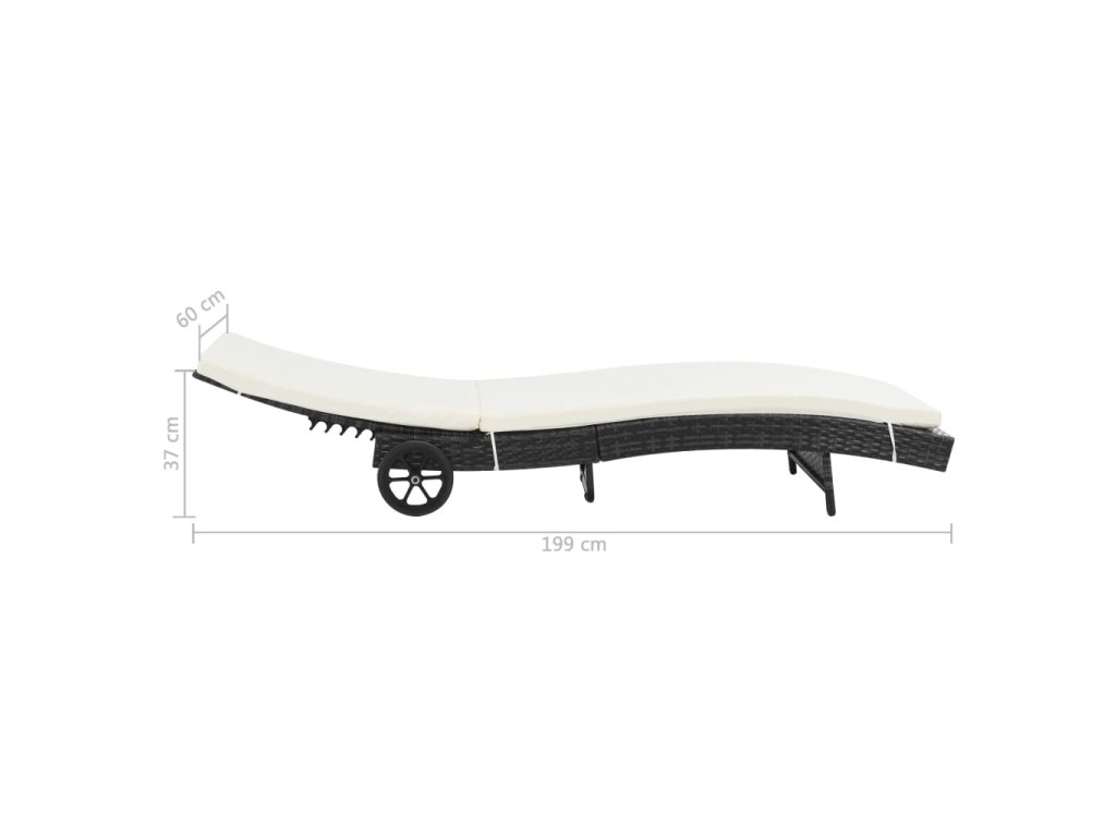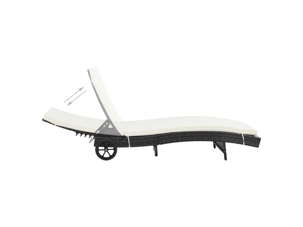 Zahradní lehátka 2 ks s kolečky a poduškami polyratan černá 3078465