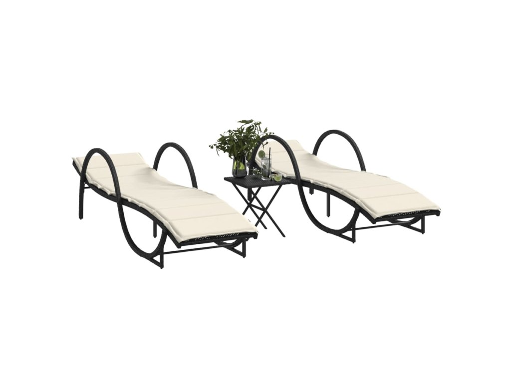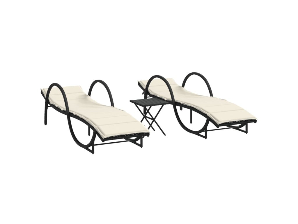 Zahradní lehátka 2 ks se stolkem černá polyratan 368263