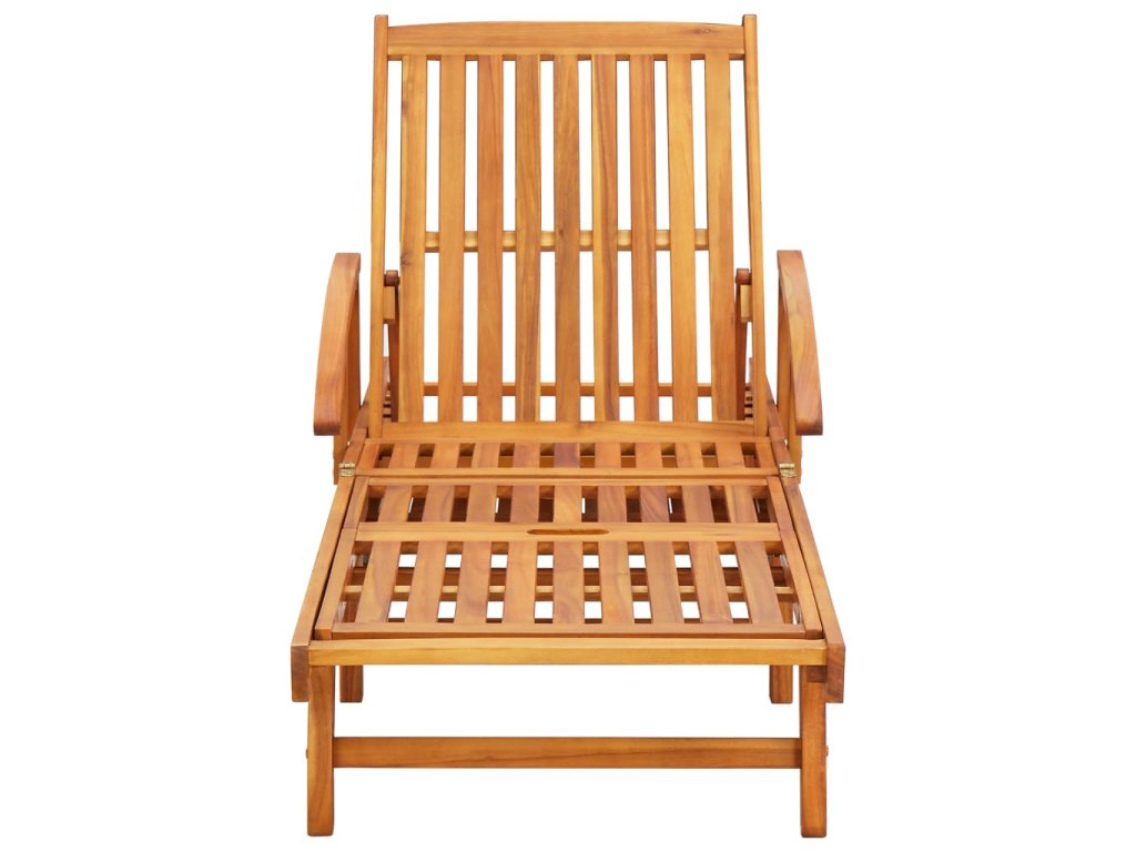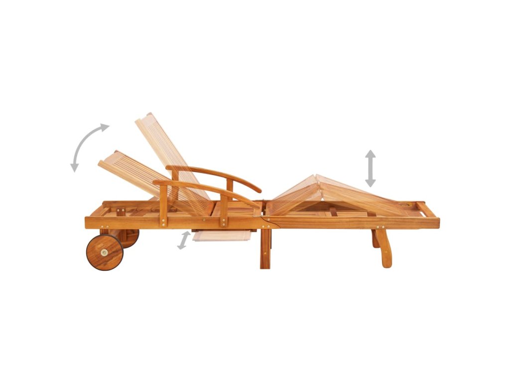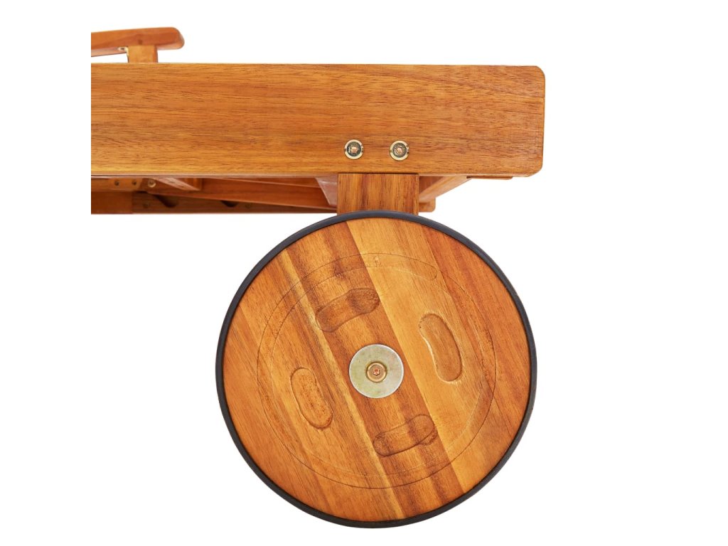 Zahradní lehátko je vyrobené z masivního akáciového dřeva a dobře odolává povětrnostním vlivům, má dlouhou životnost a je vhodné pro venkovní použití. Je vybavené kolečky, takže ho snadno přesunete, kam potřebujete. Opěradlo a opěrka nohou, které jsou nastavitelné od zcela vzpřímeného sedu až po vodorovnou polohu vleže, vám poskytnou maximální pohodlí. Když ho nepoužíváte, lze lehátko sklopit. Přiložená poduška není pouze praktickým doplňkem, ale má také dekorativní funkci.
