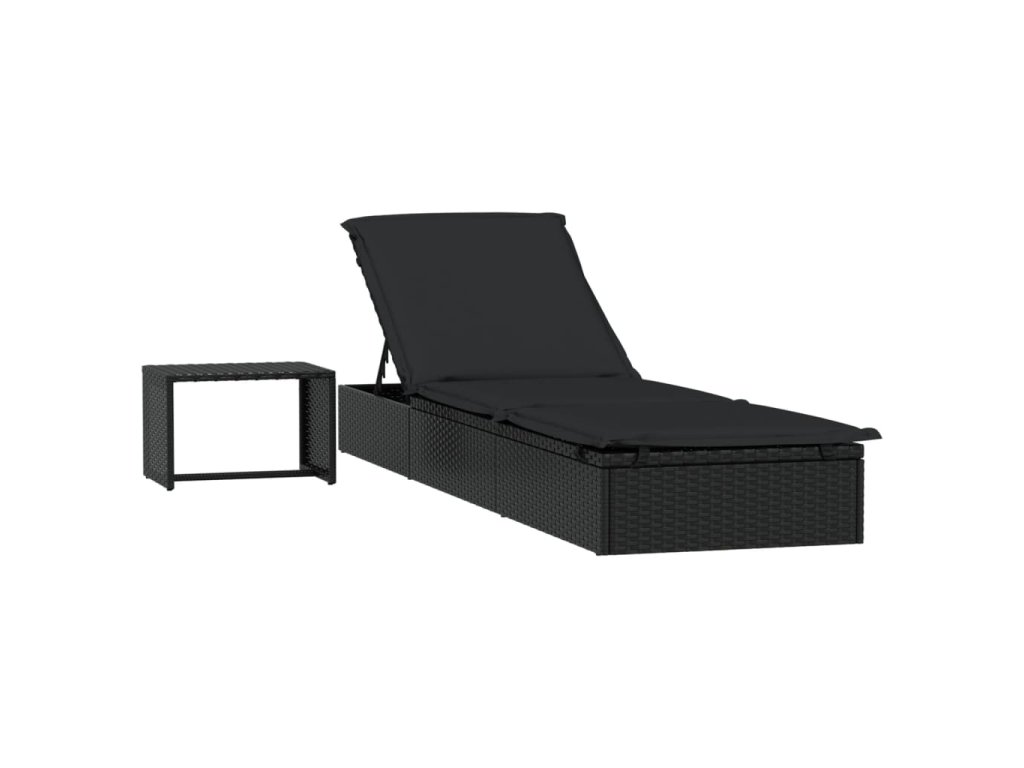 Zahradní lehátko 1 ks se stolkem černé polyratan 319634