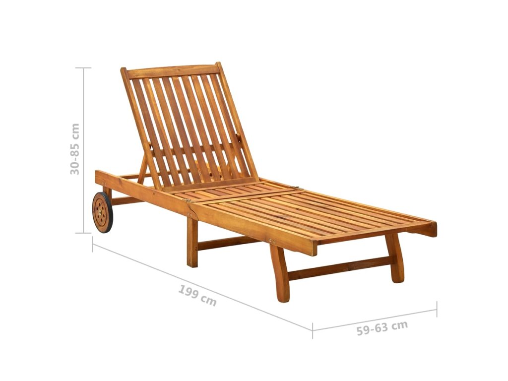 Toto lehátko je zhotovené z masivního akáciového dřeva s olejovou povrchovou úpravou, je tedy robustní a stabilní. Opěradlo je nastavitelné, takže si můžete vždycky najít tu nejpohodlnější pozici. Lamely sedáku a opěradla nabízejí skvělou oporu a mimořádné pohodlí. Zahradní lehátko je opatřeno 2 kolečky, po kterých se dá snadno přemísťovat.