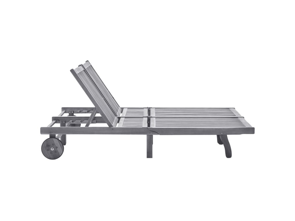 Zahradní lehátko je vyrobené z masivního akáciového dřeva s šedou povrchovou úpravou, takže je robustní a stabilní. Opěrky zad a nohou jsou polohovatelné a můžete si je snadno nastavit do požadované pozice. Opalovací lehátko se 2 kolečky bez námahy přemístíte, kam zrovna potřebujete. Poduška přispívá k optimálnímu komfortu během vaší relaxace.