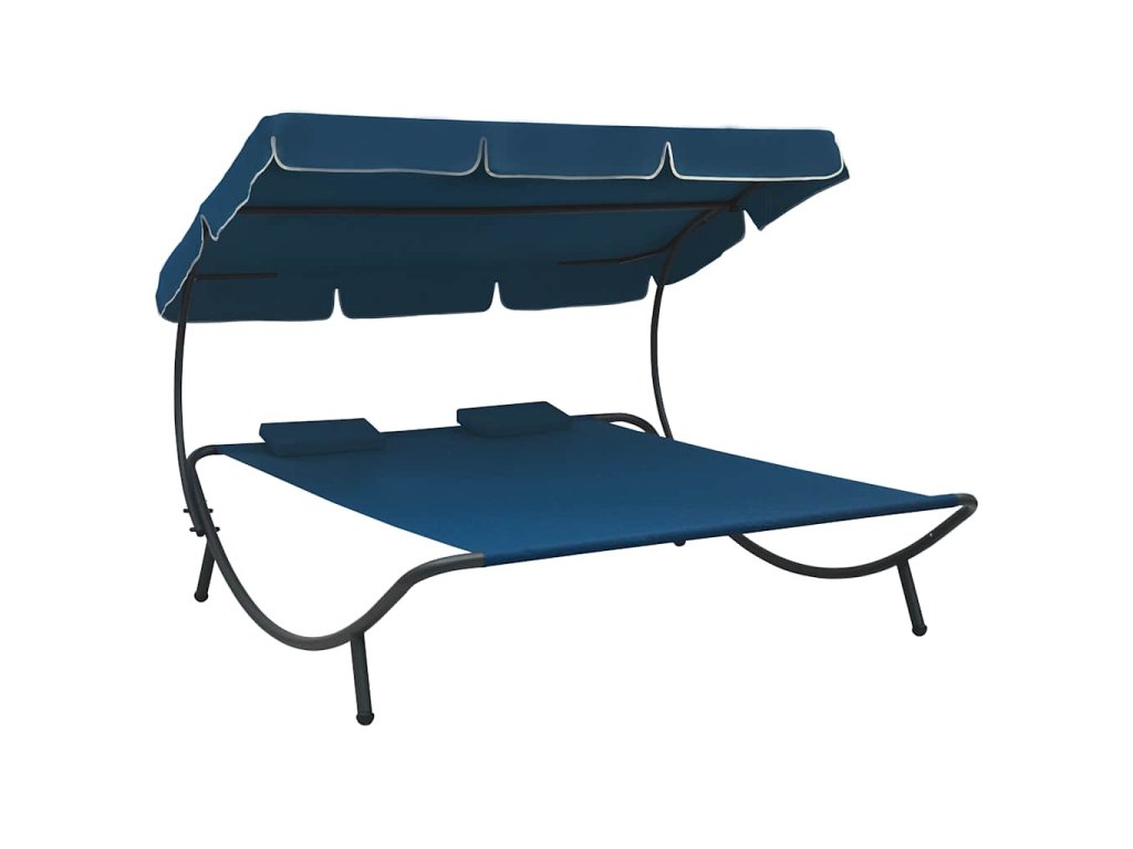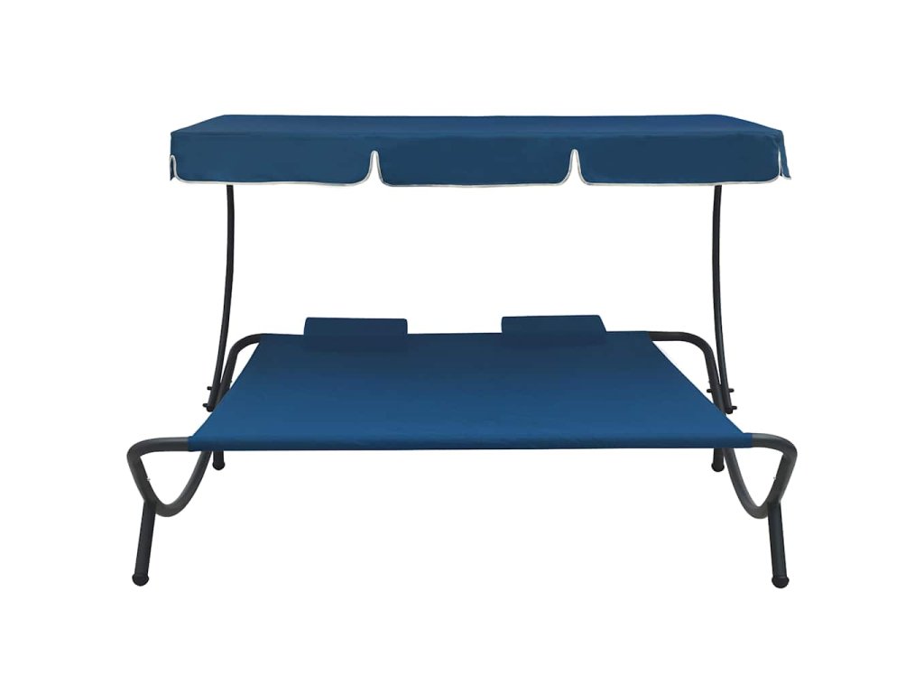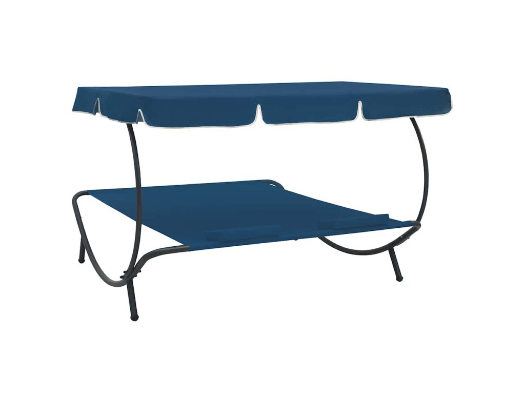 Zahradní lehátko s baldachýnem a polštáři modré 313523