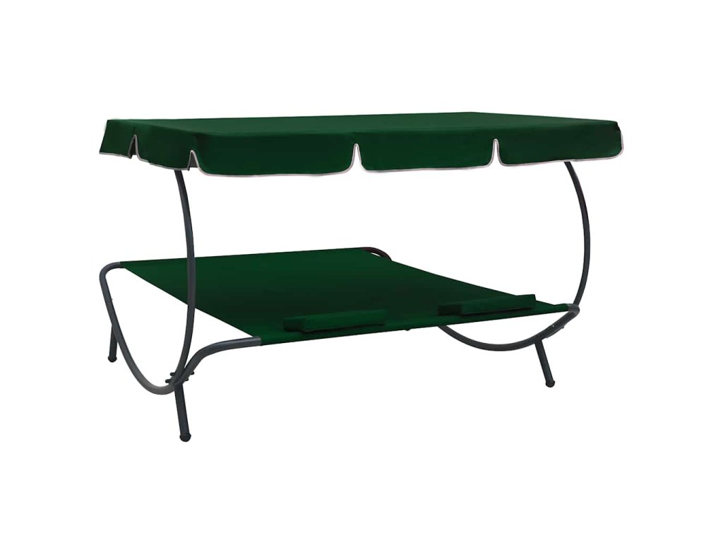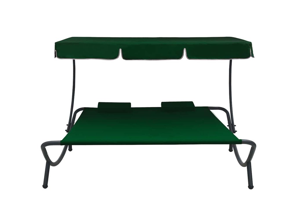 Zahradní lehátko s baldachýnem a polštáři zelené 313522