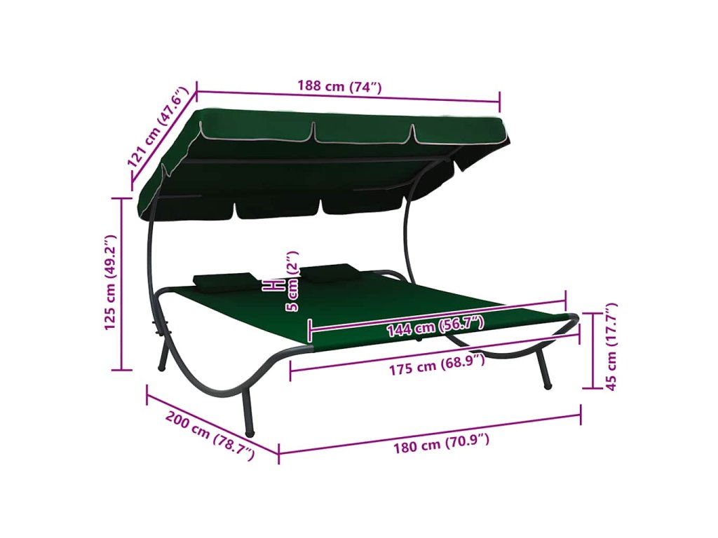 Toto dvoulůžko včetně 2 polštářů a velkého baldachýnu upoutá pozornost všude tam, kam jej umístíte. Je dokonalou volbou pro odpočinek nebo zábavu s rodinou na zahradě, dvorku, terase nebo na pláži.
