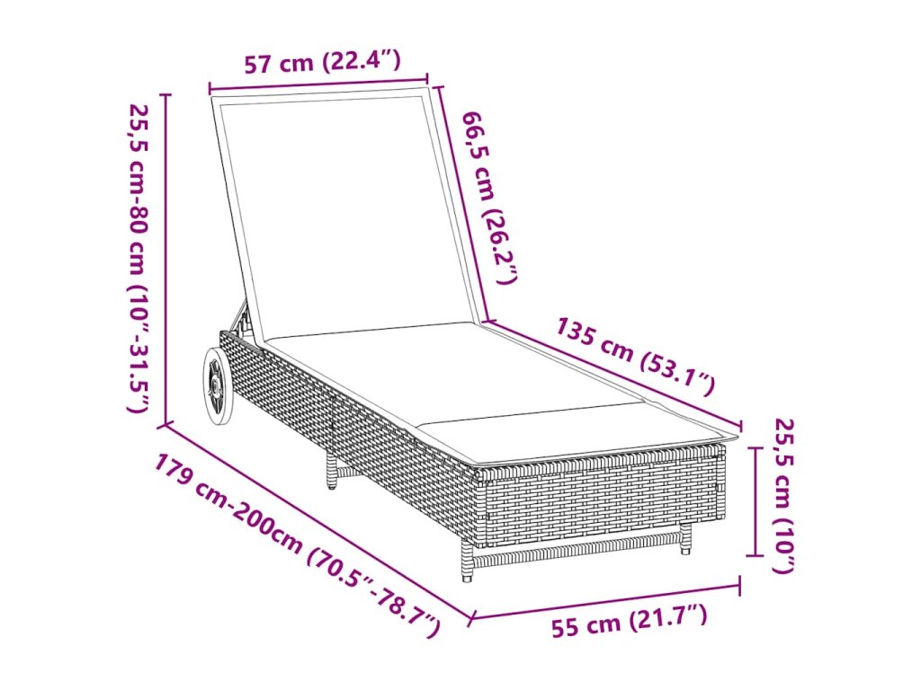 Toto lehátko na kolečkách je ideální pro odpočinek u bazénu, na balkoně nebo v kempu během dovolené či volného času.
