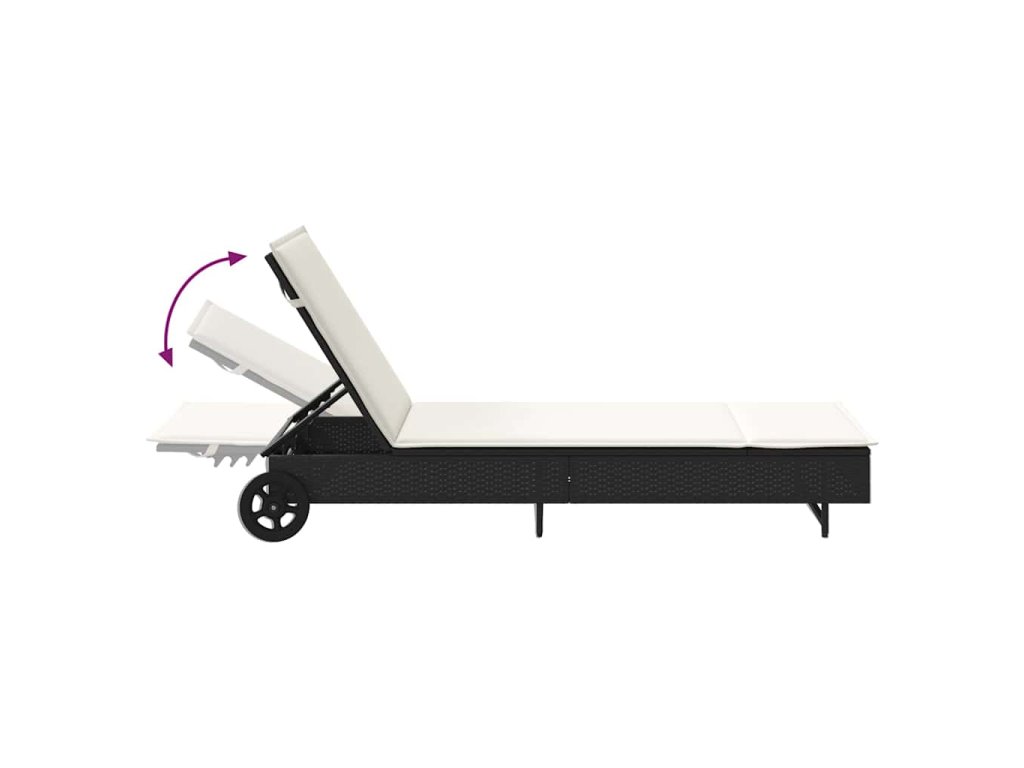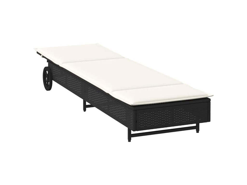 Zahradní lehátko s kolečky a poduškou černé polyratan 4104033