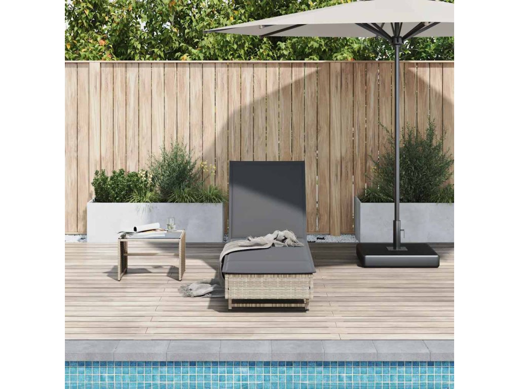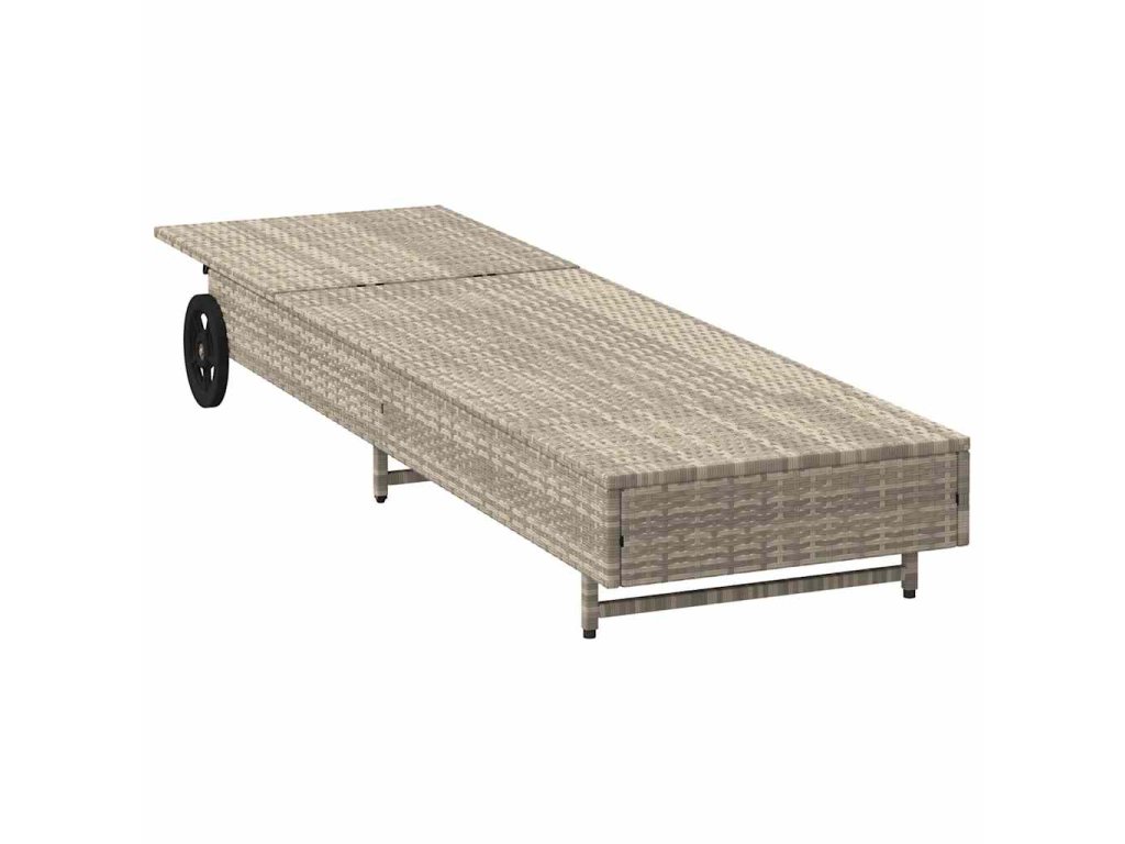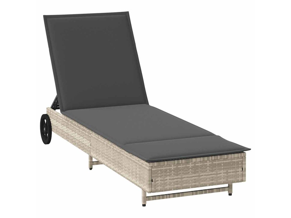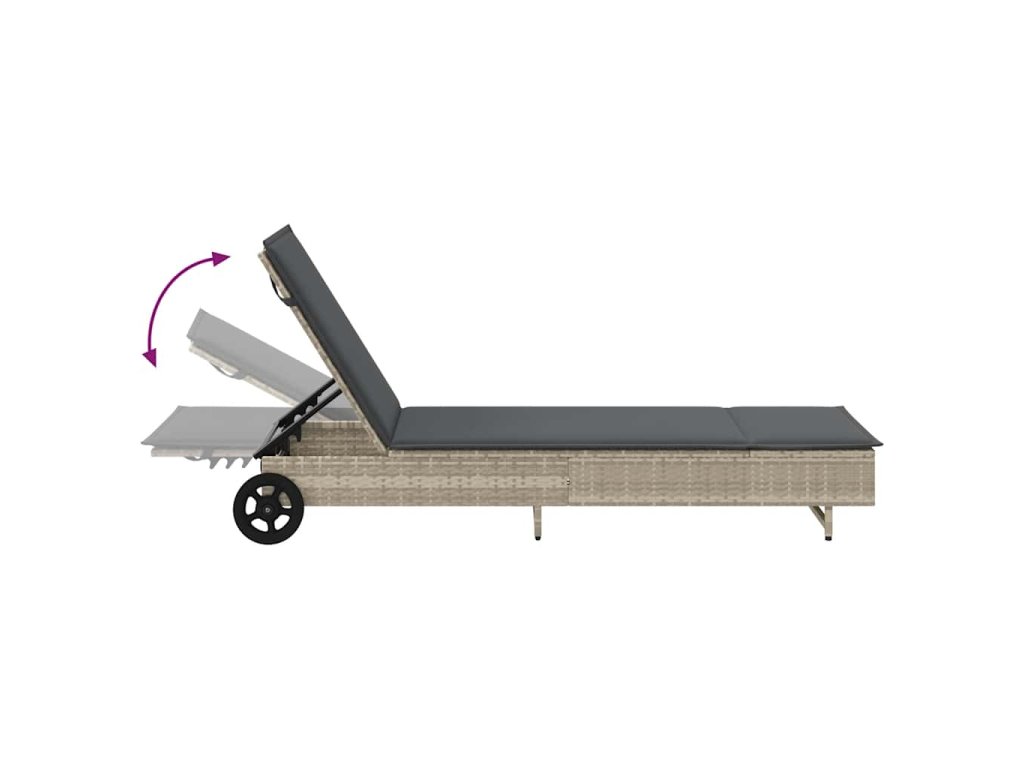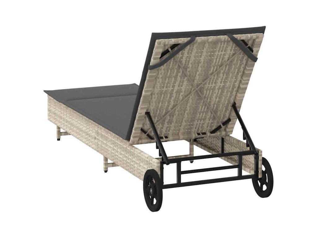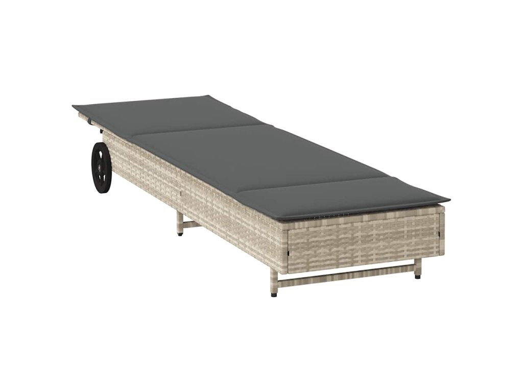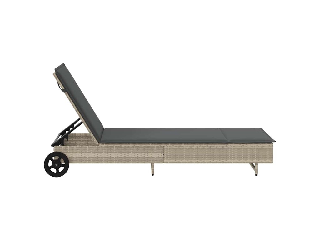 Zahradní lehátko s kolečky a poduškou světle šedé polyratan 4104038