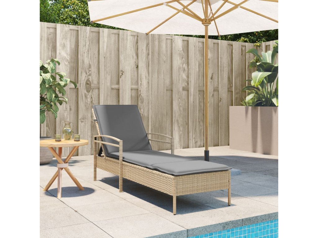 Zahradní lehátko s poduškou béžové 63 x 200 x 81 cm polyratan 368302