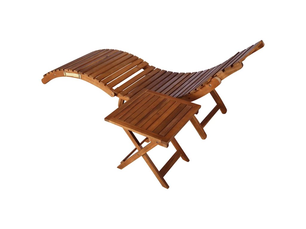 Zahradní lehátko se stolkem a poduškou masivní akáciové dřevo 3061592