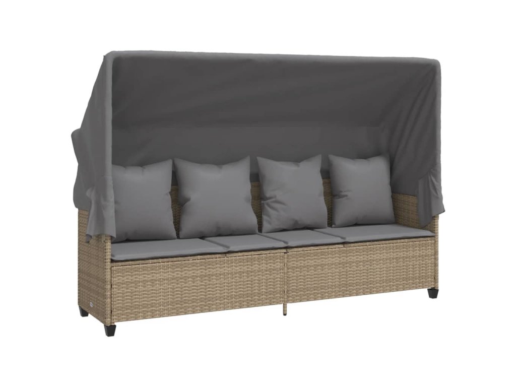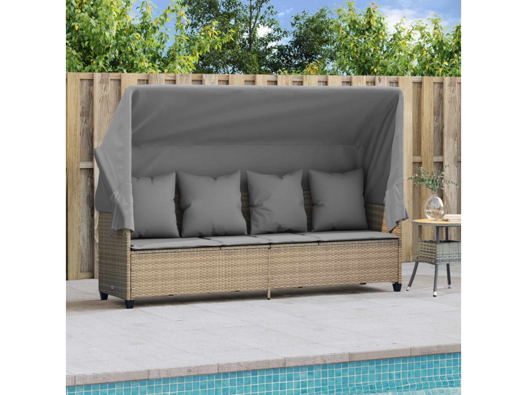 Zahradní lehátko se stříškou a poduškami béžové polyratan 368356
