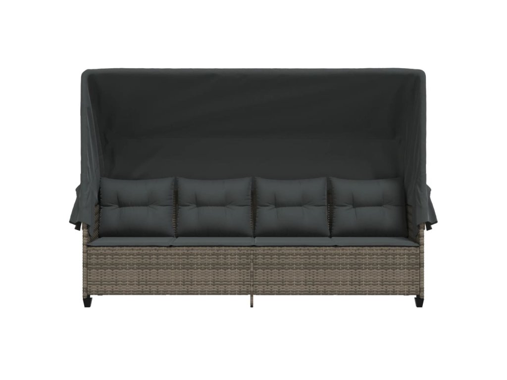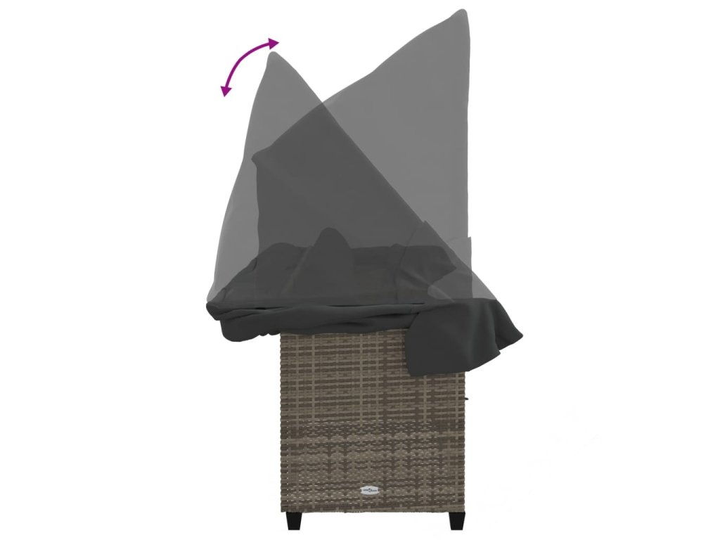 Zahradní lehátko se stříškou a poduškami šedé polyratan 368337