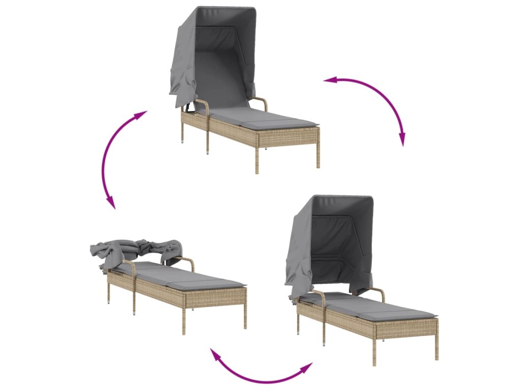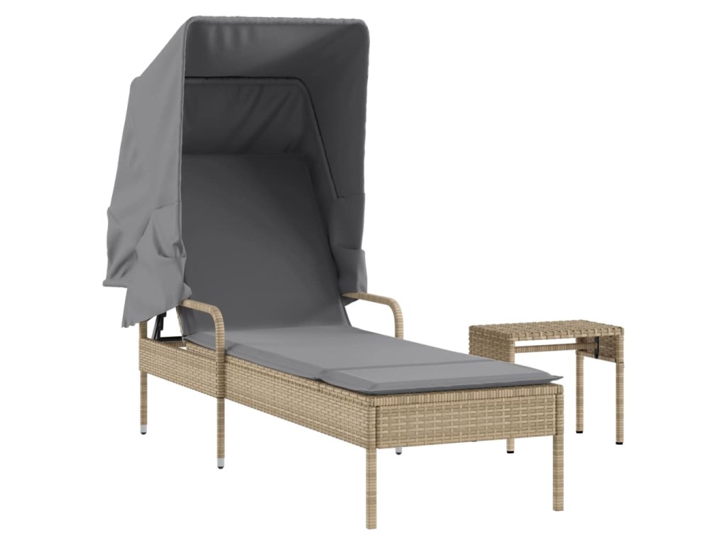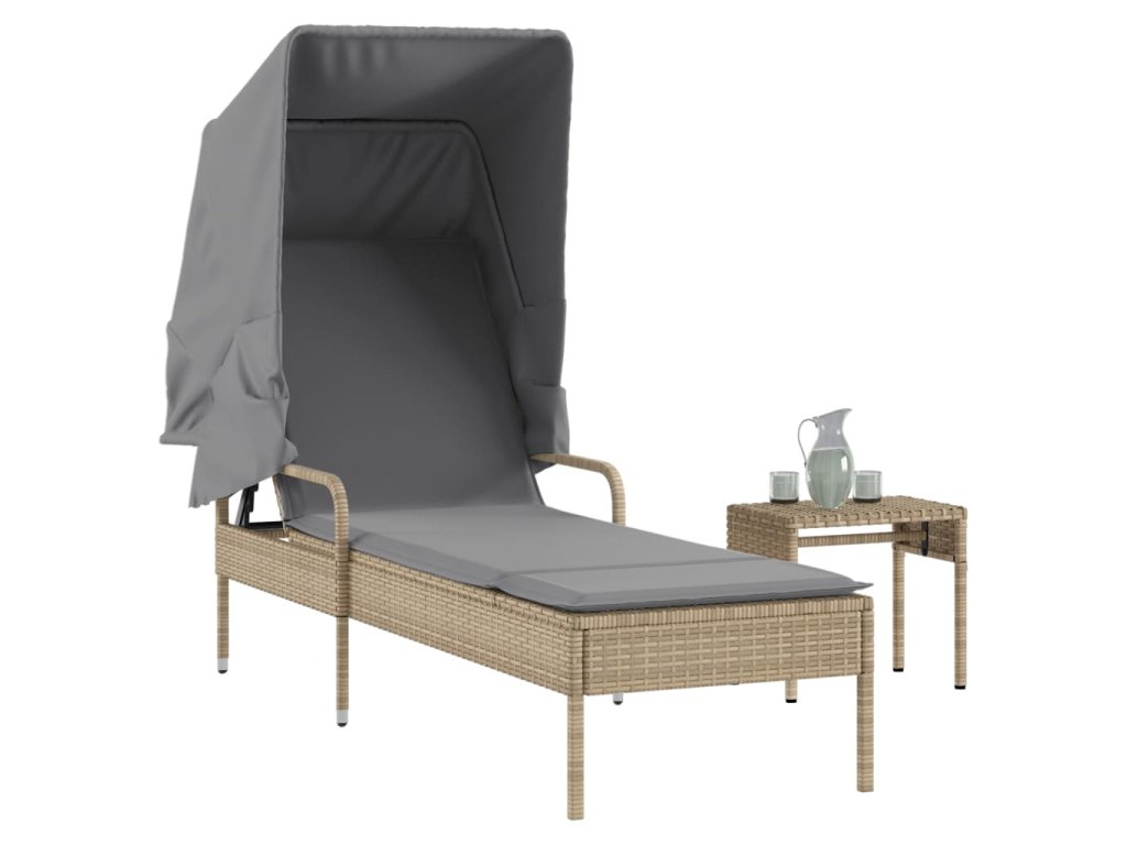 Zahradní lehátko se stříškou a stolkem béžové polyratan 368200