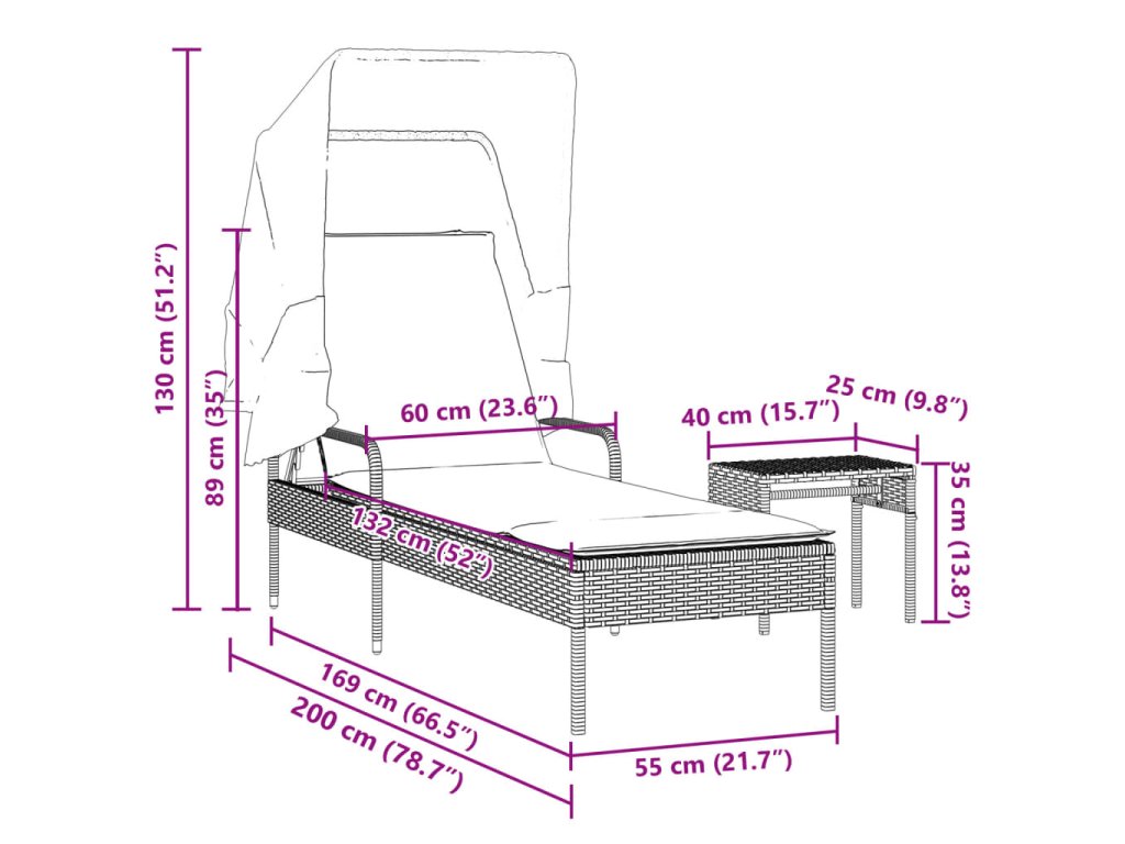 - Rozměry bez stříšky: 60 x 200 x 89 cm (Š x H x V)
