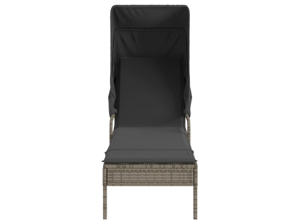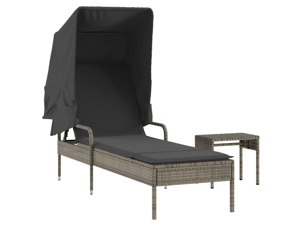 Zahradní lehátko se stříškou a stolkem šedé polyratan 368199