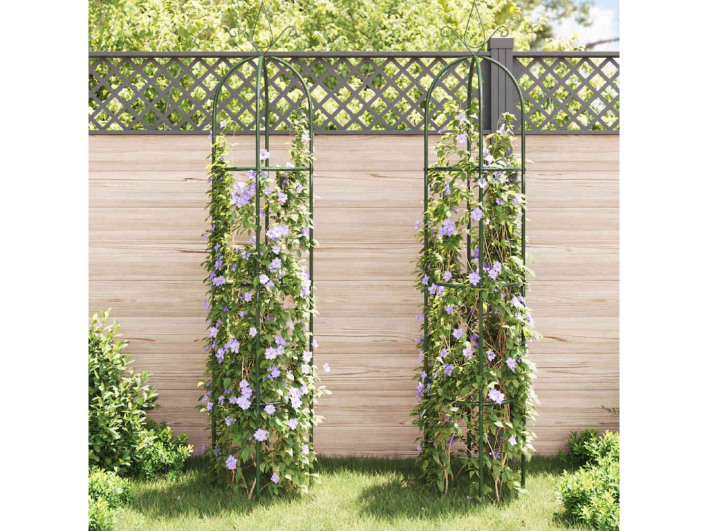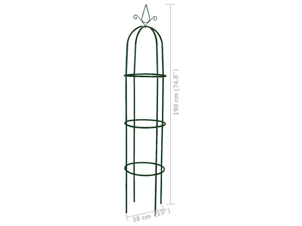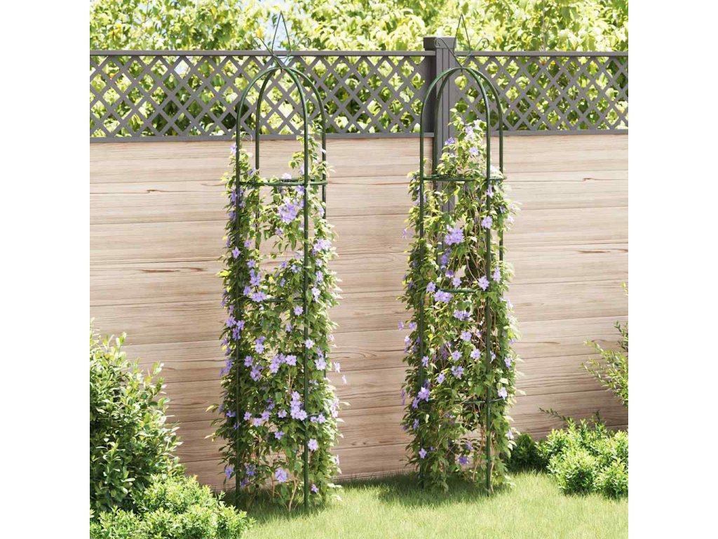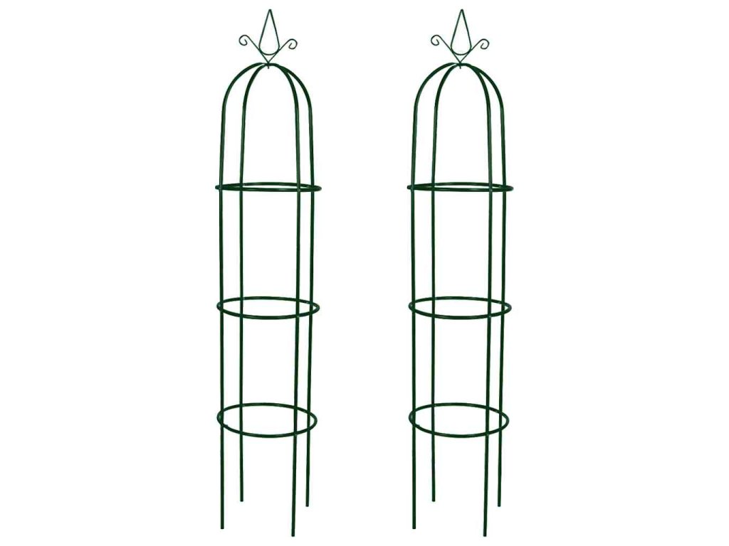 Tyto 2 zahradní opory pro popínavé rostliny ve tvaru obelisku jsou skvělou dekorací pro vaši zahradu. Jsou zhotovené z klimaticky odolného železa s dlouhou životností a dostatečně pevné, aby unesly i ty nejbujnější popínavé rostliny. Je jen na vás, do jaké hloubky je zapustíte, abyste dosáhli požadované stability.