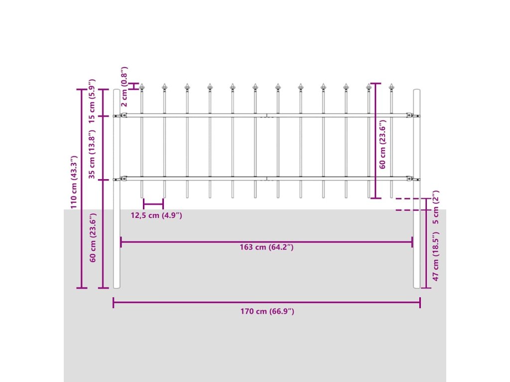 Zahradní plot 5 pcs Šedá 8,5 x 0,6 m Práškově lakovaná ocel 3334088